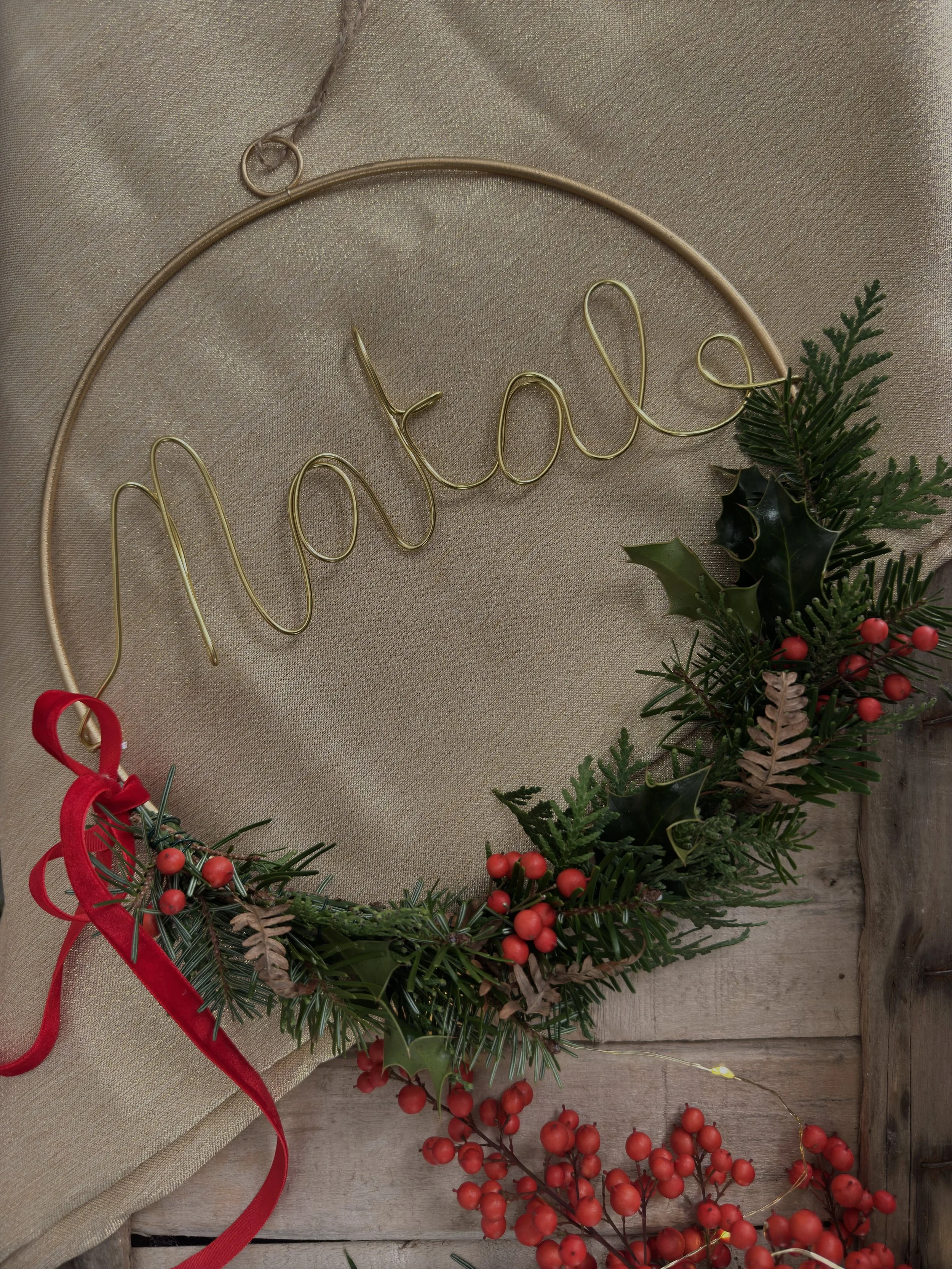 Andremo ad aggiungere la parola Natale con il filo di ferro dorato.